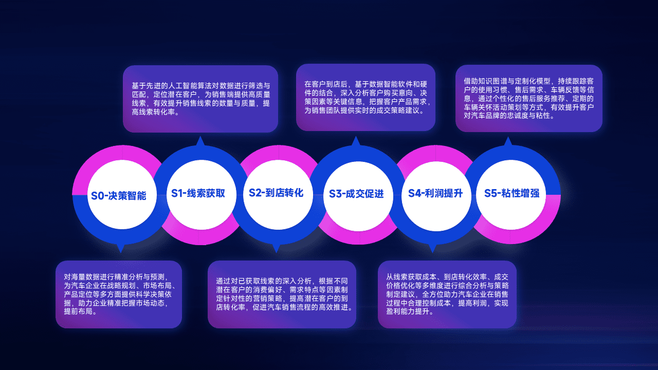 通过拓宽潜在客户来源、、优化线索分配并提高到店转化率,,以增强销售效率。。。同时,,,,利用线索数据不断优化分析模型,,,,有效提升转化率,,,扩大营销影响力。。